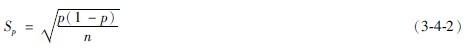 式中Sp為率的標(biāo)準(zhǔn)誤估計(jì)值; p為樣本率;n為樣本的含量