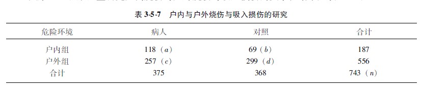 示例355:某醫(yī)生研究戶內(nèi)燒傷與戶外燒傷與吸入損傷的關(guān)系,結(jié)果見(jiàn)表357:
