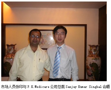 伴隨著美寶濕潤燒傷膏印度三期臨床試驗工作的不斷推進,美寶國際集團印度市場的前期開發(fā)和準備工作也被提上日程。幾個月以來,經過美寶國際集團國際部的市場人員對印度市場開發(fā)工作的不斷努力,印度多家醫(yī)藥公司對美寶的再生復原科學技術及其再生產品產生了濃厚的興趣。2010年3月2日至2010年3月5日,美寶國際集團國際部市場人員張印應印度P.K.Medicare公司總裁Sanjay Kumar Singhal和印度Elder醫(yī)藥公司生物技術部總經理Sharad A. Dahatonde的邀請,前往印度孟買P.K.Medicare公司和Elder醫(yī)藥公司進行了初步的技術交流和商務溝通。