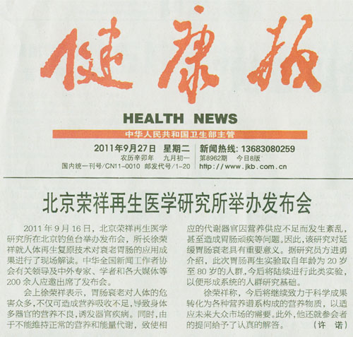 健康報:北京榮祥再生醫(yī)學所舉辦發(fā)布會