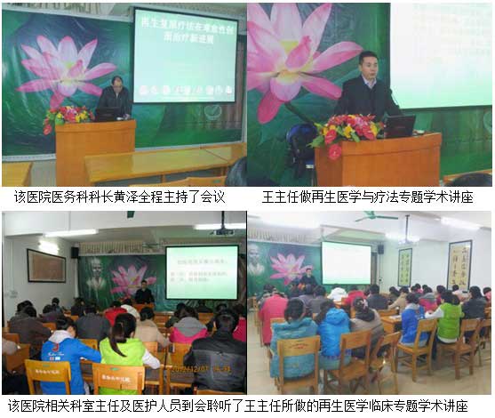 學術(shù)講座于當日下午3時在該醫(yī)院會議室舉行,王主任以“再生復(fù)原療法在難愈性創(chuàng)面治療新進展”為題進行了專題學術(shù)講座。該院相關(guān)科室的專家及醫(yī)護人員參加了此次培訓,在學術(shù)講座中,王主任首先向與會的專家介紹了著名生命科學家、醫(yī)學家、人體再生復(fù)原科學的創(chuàng)立者、再生復(fù)原療法的發(fā)明人徐榮祥教授近年來在再生醫(yī)學領(lǐng)域所取得的重大實驗及臨床研究成果,而后王主任結(jié)合了大量的臨床病例圖片及錄像資料,主要針對各類難愈性創(chuàng)傷、潰瘍創(chuàng)面的規(guī)范化處理方法與技巧、注意事項等進行了細致講解,在座的各位醫(yī)護均被這神奇的療法折服。