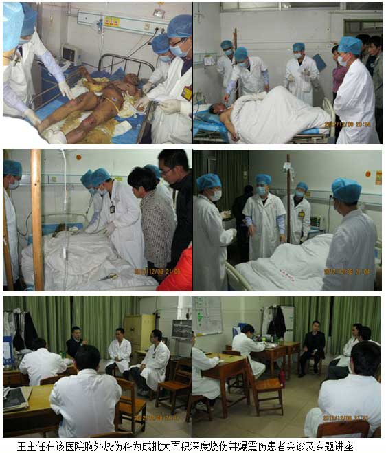 2012年12月8日早上,廣西貴港市平南縣人民醫(yī)院急診收治一批因大型氣罐爆炸致大面積深度燒沖復(fù)合傷(燒傷并爆震傷)患者,當日上午該醫(yī)院主管副院長兼胸外燒傷科主任臧德源緊急邀請王主任到該醫(yī)院為成批大面積深度燒傷合并爆震傷患者會診。該醫(yī)院創(chuàng)建于1935年,是一所集醫(yī)療、科研、教學、預(yù)防、保健、康復(fù)和社區(qū)衛(wèi)生服務(wù)于一體的綜合性縣(市)級醫(yī)院,是平南縣醫(yī)療業(yè)務(wù)技術(shù)指導中心,擔負著全縣130多萬人民的醫(yī)療保健任務(wù)。醫(yī)院設(shè)床位390張,年門急診量近36萬人次,住院病人1.6萬人次.現(xiàn)有職工624人,有碩士研究生4人,高級職稱14人,中級職稱221人。