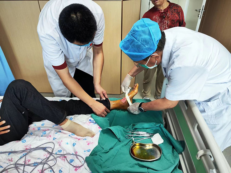 8月28日,《中國(guó)燒傷創(chuàng)瘍雜志》常務(wù)編委、燒傷創(chuàng)瘍?cè)偕t(yī)療技術(shù)臨床專家趙瑞慶,在該醫(yī)院會(huì)診了9例慢瘡患者(糖足潰瘍2例,壓瘡4例,會(huì)陰部深筋膜感染1例,臀部深筋膜感染1例,下肢外固定皮膚感染1例),并針對(duì)每例患者制定出個(gè)性化的治療方法,受到當(dāng)?shù)蒯t(yī)務(wù)人員及家屬的熱情稱贊。
