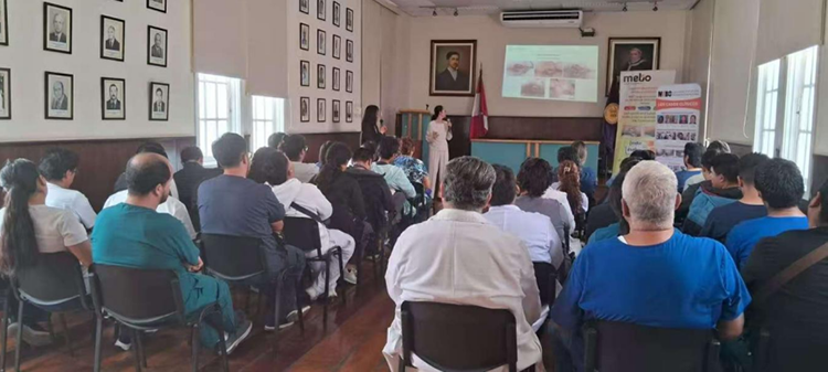 在利馬、特魯希略和阿雷基帕等地還舉辦了一系列技術(shù)研討會(huì)。多名長(zhǎng)期應(yīng)用再生醫(yī)學(xué)技術(shù)的資深醫(yī)生參與了此次再生技術(shù)專業(yè)交流活動(dòng)。美寶國(guó)際技術(shù)部主任徐巍巍系統(tǒng)介紹了再生醫(yī)學(xué)技術(shù)的三種主要標(biāo)準(zhǔn)換藥方式,對(duì)醫(yī)護(hù)人員運(yùn)用再生醫(yī)療技術(shù)處理創(chuàng)面的方法進(jìn)行了系統(tǒng)性規(guī)范,從而確保技術(shù)應(yīng)用更加精準(zhǔn)、高效。
