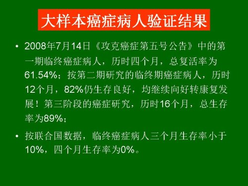 7、  第四階段研究仍是免費(fèi)研究,凡是按規(guī)定執(zhí)行研究計(jì)劃的臨終癌癥患者均獲得免費(fèi)再生食療。