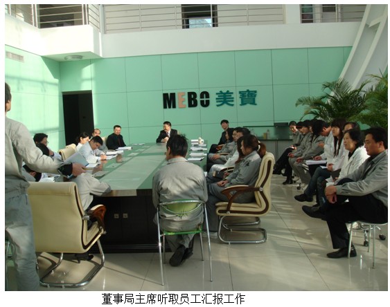 2010年1月12日上午,美寶集團(tuán)董事局主席徐榮祥來到亦莊基地,深入基層了解員工的心聲,聽取了三位一體企業(yè)所有員工的匯報,以及2010年工作計劃。徐總認(rèn)真傾聽每一位員工的發(fā)言,不時微笑點頭表示鼓勵。最后,徐總給大家講解了美寶集團(tuán)的再生科研成果在全世界的霸主地位以及對人類健康發(fā)展的重大意義。使三位一體企業(yè)全體員工接受了一堂生動精彩的培訓(xùn)教育課程。徐總對三位一體企業(yè)在2009年的工作成績給予的充分的肯定,同時提出了更高的標(biāo)準(zhǔn),要求全體員工加強(qiáng)技能、素質(zhì)的培養(yǎng)、培訓(xùn),從人力資源等各方面做好充分準(zhǔn)備。鼓勵員工在2010年的工作中為集團(tuán)的發(fā)展,做出更大的貢獻(xiàn)。