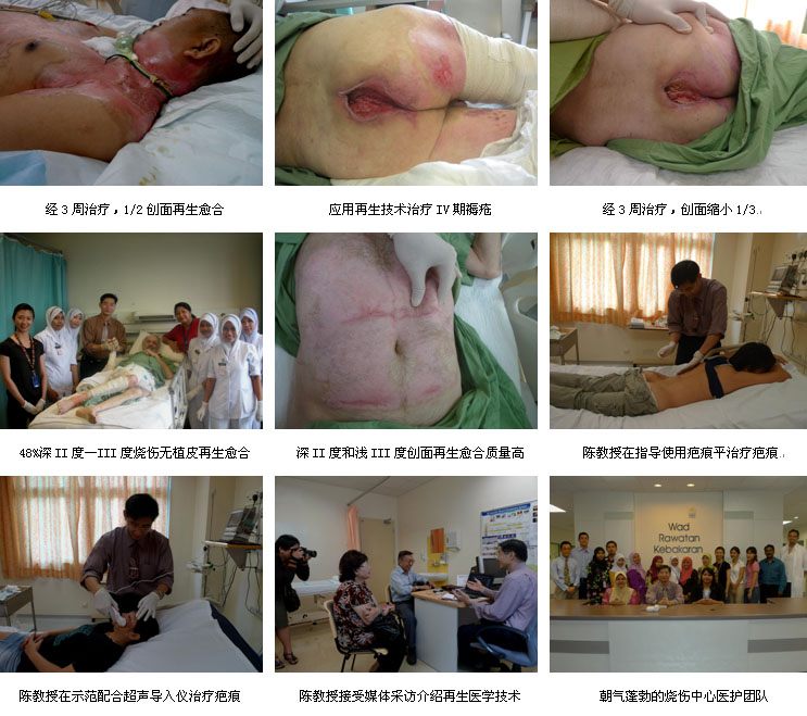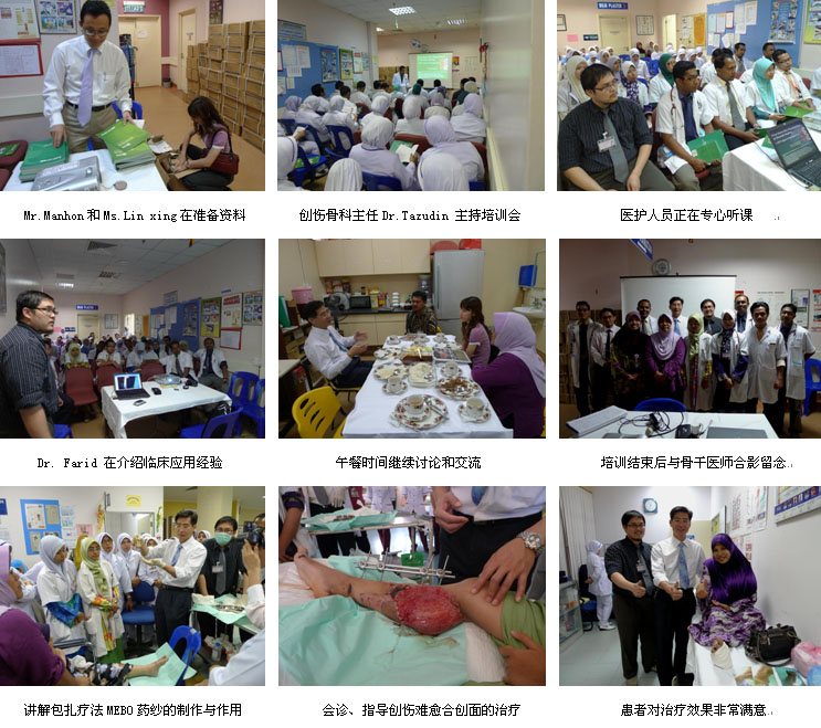 2010年4月1日至25日,馬來西亞新一年的第一輪醫(yī)療開發(fā)工作先后在首都吉隆坡市、蘇邦市、八達(dá)靈.再野市等6個(gè)省、市展開,集團(tuán)財(cái)務(wù)總監(jiān)李翠和國際部徐沖經(jīng)理也到現(xiàn)場督戰(zhàn),中國燒傷創(chuàng)瘍科技中心臨床部主任、北京榮祥再生醫(yī)學(xué)研究所副所長、北京中西醫(yī)結(jié)合學(xué)會燒傷專業(yè)委員會副主任委員、中國燒傷創(chuàng)瘍雜志社副社長陳永翀教授先后應(yīng)邀到多家政府醫(yī)院和私營醫(yī)院,進(jìn)行燒傷再生醫(yī)學(xué)技術(shù)培訓(xùn)、學(xué)術(shù)交流、到燒傷中心和創(chuàng)傷骨科會診指導(dǎo)燒傷創(chuàng)瘍病例的治療,以及和各醫(yī)院的主任、院長研究討論臨床科研工作的開展和燒傷創(chuàng)瘍再生愈合中心的建設(shè)等,很受醫(yī)院、醫(yī)師、護(hù)士和患者的歡迎。在25天的時(shí)間里,先后舉辦了院級培訓(xùn)班8期,重點(diǎn)專家學(xué)術(shù)交流7次,培訓(xùn)了燒傷、整形、普通外科、骨科的醫(yī)師和護(hù)士300余名,對 3家老醫(yī)院進(jìn)行了有效的維護(hù)和促進(jìn),成功新開發(fā)了3家大型政府教學(xué)醫(yī)院和2家私營醫(yī)院,幫助建立了一家燒傷中心(國家級技術(shù)規(guī)范基地),會診、指導(dǎo)危重疑難病例:燒傷10例(特重度燒傷4例),創(chuàng)傷11例,慢性潰瘍15例,疤痕3例,皮膚病2例,實(shí)現(xiàn)了較好的醫(yī)療開發(fā)、維護(hù)和進(jìn)一步規(guī)范臨床技術(shù)的效果。