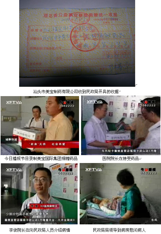 由于該欄目的收視率非常高,當(dāng)美寶國(guó)際集團(tuán)襄樊地區(qū)辦事處的劉平同志收看了此報(bào)道后,他在第一時(shí)間向駐湖北省區(qū)領(lǐng)導(dǎo)、醫(yī)藥集團(tuán)總裁楊智斌進(jìn)行了匯報(bào),美寶國(guó)際集團(tuán)的領(lǐng)導(dǎo)在得知情況后當(dāng)即作出指示,要求向劉洪林患者采取救助,并在必要之時(shí)派出專家組進(jìn)行會(huì)診救助,這些工作必需在24小時(shí)之內(nèi)完成。在接到領(lǐng)導(dǎo)的指示后,美寶國(guó)際集團(tuán)湖北辦事處主任黃彥勇帶領(lǐng)湖北辦事處所有工作人員帶著籌備好的藥物——美寶濕潤(rùn)燒傷膏及美寶創(chuàng)瘍貼,冒著酷暑趕到了燒傷創(chuàng)瘍中心襄樊分中心為患者進(jìn)行了愛(ài)心捐贈(zèng)。