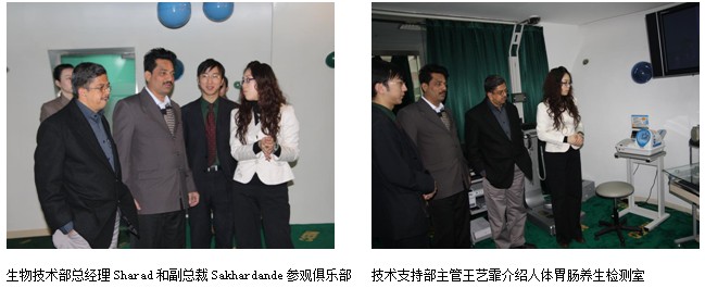 最后,Mr.Sharad和Mr.Sakhardande在技術(shù)支持部主任王藝霏的帶領(lǐng)下,參觀了美寶人體再生復原俱樂部和人體細胞培養(yǎng)實驗室,實際觀摩了人體再生復原科學技術(shù)的應用。Mr.Sharad和Mr.Sakhardande對美寶的先進的科學技術(shù)和人文環(huán)境給予了高度的評價,并希望人體再生復原科學技術(shù)能夠早日引進印度,造福印度百姓。