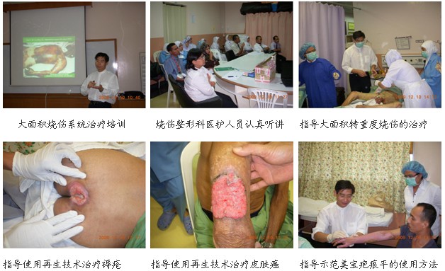 上午,陳教授以“大面積燒傷的系統(tǒng)治療”為題,對該院燒傷整形科的全體醫(yī)護(hù)人員進(jìn)行了燒傷再生醫(yī)學(xué)療法治療大面積燒傷的抗休克、預(yù)防控制感染、多器官功能的保護(hù)、營養(yǎng)支持治療等系統(tǒng)的培訓(xùn),陳教授結(jié)合了自己20年的臨床經(jīng)驗毫不保留地給在場的醫(yī)護(hù)人員進(jìn)行了傳授,同時舉出了各種典型病例及治療意見,大家都表示受益匪淺。接著,陳教授又對目前該院使用再生醫(yī)學(xué)技術(shù)治療的9位燒傷、創(chuàng)瘍患者進(jìn)行會診,現(xiàn)場示范和指導(dǎo)醫(yī)生和護(hù)士換藥,強(qiáng)調(diào)了注意的事項,要求大家要做到理論和實際相結(jié)合。    下午,陳教授向燒傷整形科的主任和醫(yī)護(hù)人員示范和傳授了“自體微粒皮種植原位培養(yǎng)再生技術(shù)”,使該院燒傷科的燒傷再生技術(shù)的水平得到了進(jìn)一步提高。