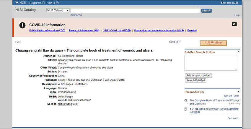《創(chuàng)瘍治療大全》被美國國家醫(yī)學(xué)圖書館收錄
