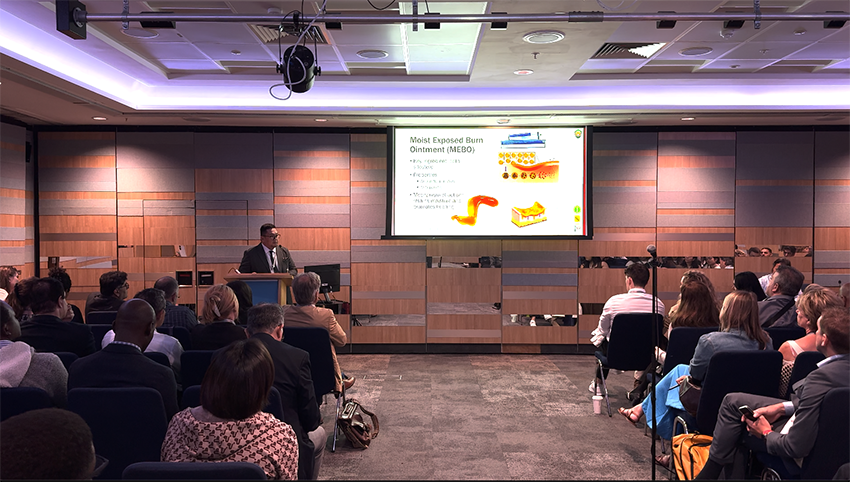 在第二天的日程中,Gerald Abesamis受邀進行大會主題演講,帶來了“再生醫(yī)療技術(shù)治療面部燒傷的臨床效果”的演講。演講中,他從面部的特殊性及治療難度出發(fā),側(cè)重展現(xiàn)濕潤暴露療法無需復雜的敷料,治療期間不會對面部造成功能性的影響;通過臨床試驗結(jié)果,展現(xiàn)再生醫(yī)療技術(shù)相對傳統(tǒng)治療方案,不僅有更顯著的療效,更能提供良好的緩解疼痛的功效。