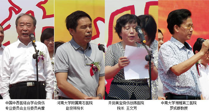 繽紛絢麗的禮炮、歡快祥和的音樂(lè),喜氣洋洋的熱鬧氣氛,點(diǎn)綴出一個(gè)吉祥熱烈的初夏盛典現(xiàn)場(chǎng),開(kāi)封市政協(xié)副主席蔣忠仆、開(kāi)封市人大科教文衛(wèi)主任王金榮、開(kāi)封市人民政府副秘書長(zhǎng)張宛紅、開(kāi)封市衛(wèi)生局副局長(zhǎng)呼新偉、開(kāi)封空分集團(tuán)公司副總經(jīng)理劉威、美寶國(guó)際集團(tuán)總裁楊智斌等領(lǐng)導(dǎo)出席典禮并講話。參加典禮儀式的還有來(lái)自中國(guó)中西醫(yī)結(jié)合學(xué)會(huì)燒傷專業(yè)委員會(huì)主任委員肖摩教授、河南大學(xué)附屬南石醫(yī)院院長(zhǎng)趙俊祥教授、河南煤化永煤集團(tuán)總醫(yī)院田宗皎院長(zhǎng)、中南大學(xué)湘雅第三附屬醫(yī)院燒傷科主任博士生導(dǎo)師羅成群教授,開(kāi)封市第一人民醫(yī)院李華強(qiáng)副院長(zhǎng)到會(huì)并參加了剪彩儀式,來(lái)自開(kāi)封空分集團(tuán)等企業(yè)界、各級(jí)醫(yī)院同仁、河南省電視臺(tái)、開(kāi)封電視臺(tái)、開(kāi)封日?qǐng)?bào)、卞京晚報(bào)等媒體記者朋友200余人歡聚一堂,共同見(jiàn)證了這一美好的歷史時(shí)刻。