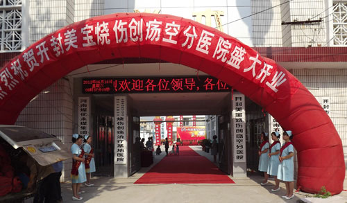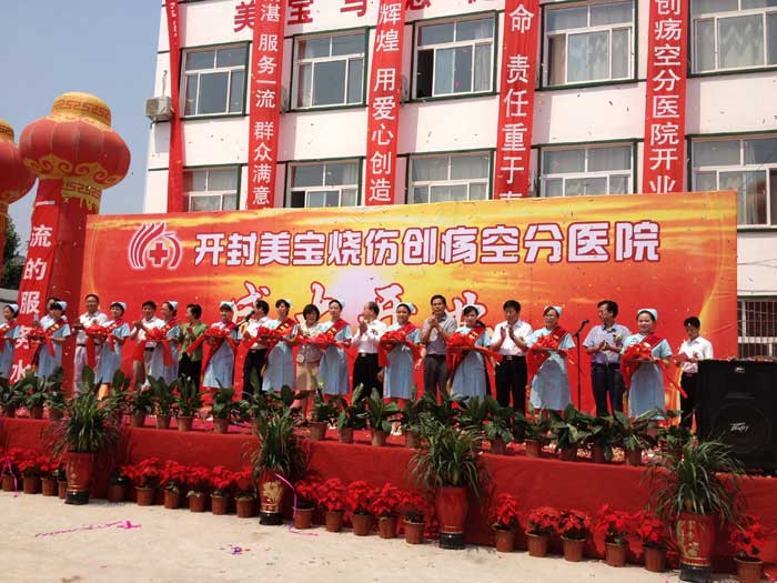 風(fēng)和日麗,彩旗飄展,紅獅威武,鞭炮齊鳴。2012年6月16日,來(lái)自四面八方的領(lǐng)導(dǎo)、賓朋匯聚在中國(guó)歷史名城—開(kāi)封,都為了慶祝一件共同的盛事----開(kāi)封美寶燒傷創(chuàng)瘍空分醫(yī)院開(kāi)業(yè)慶典。