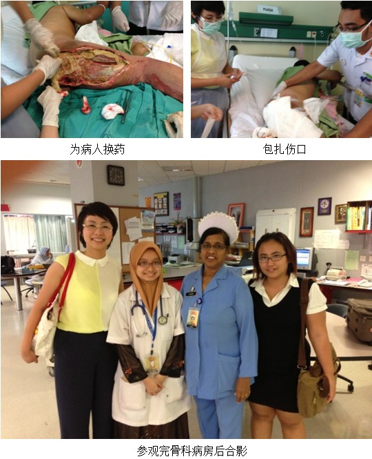 繼續(xù)教育項目開始前,我們拜訪了馬來國大醫(yī)院((Hospital Universiti Kebangsaan Malaysia)燒傷科主任Dr. Farrah及護士長,參觀了燒傷科病房,了解了醫(yī)務(wù)人員的學(xué)習(xí)需求,時逢Dr. Farrah 有一外科病人需要會診,該病人72歲,女,頭頂部有一腫瘤,切除四天,病理結(jié)果仍需2個星期,會診后,決定讓病人使用再生療法,因為美寶燒傷膏不是該醫(yī)院的基藥,醫(yī)生不能直接開處方,只能病人自己買了拿來換藥,因此,張美艷及Noliza在科室等了病人家屬2個半小時,成功介紹病人使用美寶燒傷膏!并計劃跟蹤隨訪該案例!
