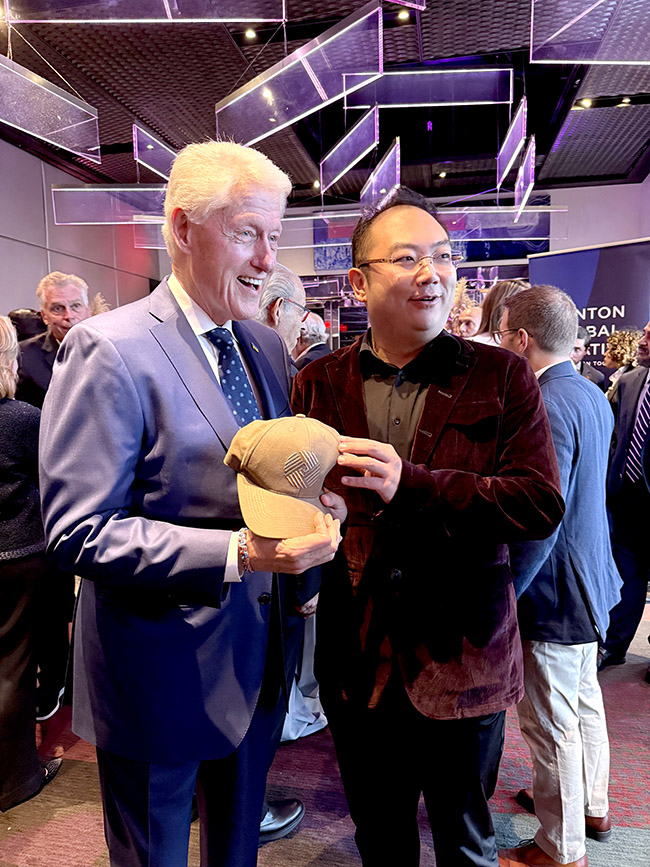 共續(xù)APEC傳承,美寶集團(tuán)董事局主席徐鵬向克林頓贈(zèng)送APEC2024帽子