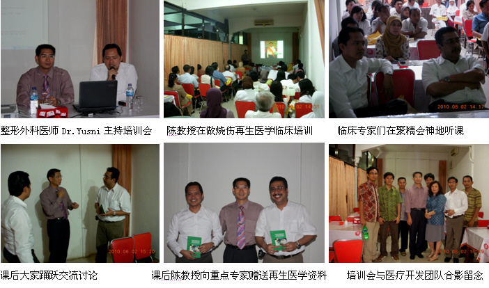 同時,經(jīng)過精心策劃和安排,2010年8月1日,剛剛結(jié)束馬來西亞醫(yī)療開發(fā)與維護工作的中國燒傷創(chuàng)瘍科技中心臨床部主任、北京榮祥再生醫(yī)學(xué)研究所副所長、北京中西醫(yī)結(jié)合學(xué)會燒傷專業(yè)委員會副主任委員陳永翀教授顧不上休息,便馬不停蹄地趕往印度尼西亞(印尼),在Combiphar 負(fù)責(zé)醫(yī)療開發(fā)的Mr. Kirastha 的組織、安排和全程陪同下,展開了印尼2010年的第二輪醫(yī)療開發(fā)工作。在這次的醫(yī)療開發(fā)工作中,能夠很好地和各級醫(yī)師學(xué)會或醫(yī)院緊密合作,有效地提高了培訓(xùn)班的組織能力、影響力、學(xué)術(shù)水平等,由于有繼教學(xué)分而且培訓(xùn)內(nèi)容新穎、實用,而很受臨床醫(yī)護人員的歡迎,為醫(yī)療開發(fā)摸索出了一條很好的路子。在這次的醫(yī)療開發(fā)過程中,通過這種模式成功參加了印尼全國的燒傷整形外科大會,舉辦了省級培訓(xùn)班2期,市級培訓(xùn)班3期,院內(nèi)培訓(xùn)班2期,重點專家學(xué)術(shù)交流5次,培訓(xùn)了燒傷、整形、普通外科、皮膚科、骨科、婦產(chǎn)科醫(yī)師和護士690多名,培訓(xùn)市場醫(yī)療開發(fā)人員19名,成功開發(fā)了不少于5家大型政府教學(xué)醫(yī)院,會診、指導(dǎo)1例大面積特重度燒傷和另外5例創(chuàng)瘍患者的治療。由于開發(fā)的路子對,達(dá)到了高效率的開發(fā)效果。下面以簡短的圖文方式與大家分享成功的經(jīng)驗。