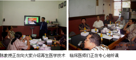 2、8月3日上午,陳教授和Mr. Kirastha剛從Probolinggo市趕回到雅加達(dá)市,顧不上休息便直接奔赴Fatmawati hospital Jakarta醫(yī)院(政府醫(yī)院,400病床,有燒傷中心)的外科教研室,給該院的外科醫(yī)師、整形燒傷醫(yī)師介紹燒傷再生醫(yī)學(xué)與療法,大家聽得很認(rèn)真,對再生醫(yī)學(xué)技術(shù)非常感興趣,達(dá)到了較好的培訓(xùn)效果,為再生醫(yī)學(xué)技術(shù)引進該院奠定了良好的基礎(chǔ)。