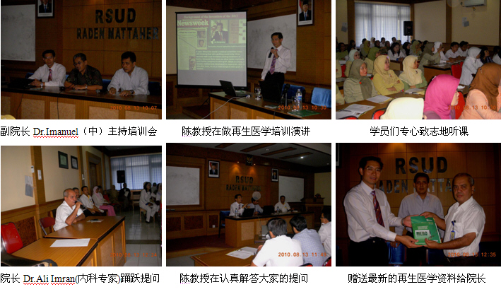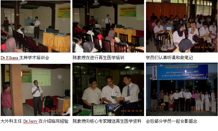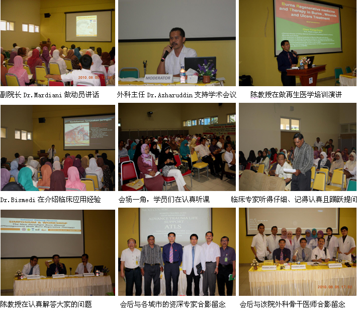 4、8月5日上午10時,由印尼醫(yī)師學(xué)會主辦、Zainul Abidin Hospital承辦的Banda Aceh省級燒傷再生醫(yī)學(xué)臨床培訓(xùn)班(省級繼續(xù)教育項目,學(xué)分12分)在Zainul Abidin Hospital學(xué)術(shù)報告廳里成功舉辦。Zainul Abidin Hospital是當(dāng)?shù)刈畲蟮慕虒W(xué)醫(yī)院,500病床,醫(yī)院正在計劃利用再生醫(yī)學(xué)技術(shù)的優(yōu)勢籌建燒傷中心。來自全省3個主要城市的5家政府醫(yī)院和其它20多家私營醫(yī)院的120多名臨床醫(yī)師、護士參加了這次培訓(xùn)會。該院副院長Dr.Mardiani到會,并做動員講話。學(xué)術(shù)交流由醫(yī)院的大外科主任Dr. Azharuddin主持,陳教授應(yīng)邀作了“燒傷再生醫(yī)學(xué)與療法在燒傷、創(chuàng)瘍疾病治療的臨床規(guī)范應(yīng)用”的培訓(xùn)演講。另外,該院的整形、燒傷外科醫(yī)師Dr.Bismedi結(jié)合自己近期應(yīng)用再生醫(yī)學(xué)技術(shù)治療的2例燒傷患者向大家介紹了臨床應(yīng)用的經(jīng)驗和體會。培訓(xùn)班的學(xué)術(shù)氛圍濃厚,大家學(xué)習(xí)、交流再生醫(yī)學(xué)技術(shù)的熱情高漲,效果理想。