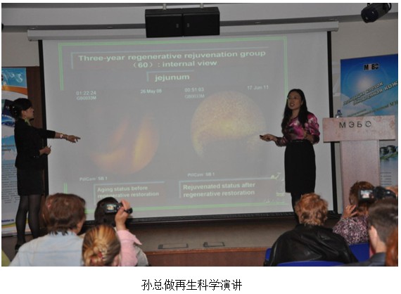 會議由美寶俄羅斯公司員工熱尼亞擔(dān)任主持人,共分成三個部分。首先,由美寶國際市場集團總裁、首席科學(xué)家孫霞女士以“美寶人體再生科學(xué)發(fā)展之路”為題作學(xué)術(shù)演講,美寶國際市場集團直銷總部李滿主任擔(dān)任現(xiàn)場翻譯。孫總從再生科學(xué)的起源深入到再生醫(yī)學(xué)原理,然后拓展到各種再生復(fù)原的應(yīng)用。其中穿插大量的臨床圖片及視頻,為到會人員遞上了一份豐盛的美寶再生科學(xué)大餐。演講過程中,經(jīng)銷商們目不轉(zhuǎn)睛盯著屏幕,并埋頭認(rèn)真記錄下每一處的應(yīng)用要點。孫總借闡述人體再生的三個基本條件“潛能再生細(xì)胞、再生營養(yǎng)物質(zhì)、再生環(huán)境”,解釋了一直困擾經(jīng)銷商們關(guān)于再生營養(yǎng)物質(zhì)進入體內(nèi)如何發(fā)揮作用的疑問,演講最后孫總代表再生科學(xué)和醫(yī)學(xué)的創(chuàng)始者徐榮祥教授,向所有與會的,來自俄羅斯不同城市的伙伴們致意,希望通過他們的分享,將再生醫(yī)學(xué)廣為傳播,使更多的人受益。原定2小時的演講被延長到近3小時才在大家熱烈的掌聲中結(jié)束,經(jīng)銷商們紛紛表示孫總的講解精辟清晰,是幫助他們開辟市場的有力武器。
