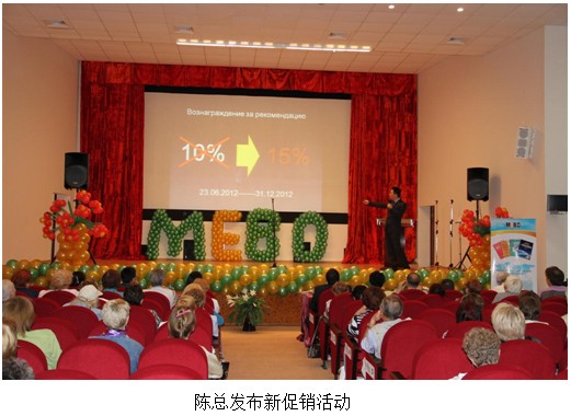 在623的慶典大會上,美寶俄羅斯公司總經(jīng)理陳剛先生宣布了REME再生系列護膚品正式上市,同時發(fā)布了下半年的市場促銷計劃。應(yīng)經(jīng)銷商的要求,專門請到了美寶集團仙人堂會所技術(shù)專家岳敏女士做“皮膚再生還童技術(shù)應(yīng)用”培訓(xùn)。從再生科學(xué)和皮膚生理特性的高度,詮釋了美寶REME再生系列護膚品的優(yōu)點和原理。
