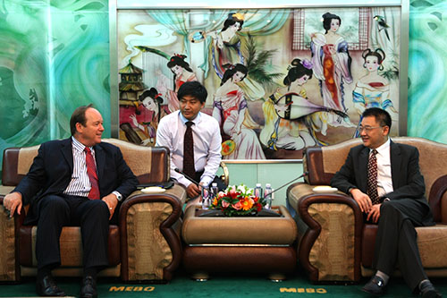 2013年8月7日,專(zhuān)訪(fǎng)“美國(guó)美寶”國(guó)際總部?jī)H半月有余的美國(guó)加利福尼亞州全球投資總監(jiān)Del Christensen先生急赴中國(guó),再訪(fǎng)“中國(guó)美寶”,潛心耕耘雙方關(guān)系。美寶集團(tuán)董事局主席徐榮祥教授會(huì)見(jiàn)了Del Christensen先生,中國(guó)美寶總裁楊智斌、常務(wù)副總裁張倩,副總裁孫霞、副總裁陳寶琪等參加了此次會(huì)晤。
