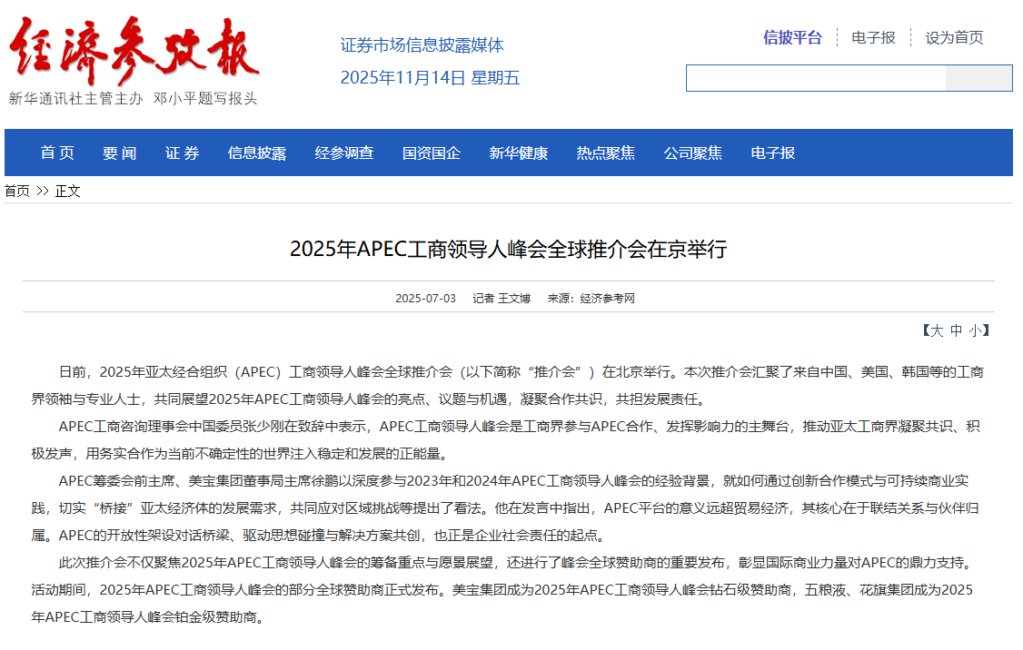 經(jīng)濟參考網(wǎng):2025年APEC工商領(lǐng)導(dǎo)人峰會全球推介會在京舉行