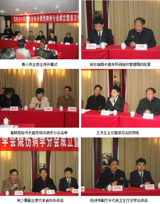 3月14日上午9時(shí),金廣達(dá)大飯店16樓會(huì)議室座無虛席,來自福建省中醫(yī)學(xué)院、福建省人民醫(yī)院、福建省醫(yī)科大學(xué)第二附屬醫(yī)院、泉州醫(yī)學(xué)高等??茖W(xué)校、福建醫(yī)科大學(xué)附屬廈門第一醫(yī)院、泉州市人民醫(yī)院、龍巖市第一醫(yī)院、邵武市立醫(yī)院、永安市立醫(yī)院等省、市32家醫(yī)療單位的45余名從事燒傷、創(chuàng)傷、潰瘍等專業(yè)的專家、學(xué)者和業(yè)務(wù)骨干歡聚一堂,參加福建省中西醫(yī)結(jié)合學(xué)會(huì)第一屆燒傷病學(xué)分會(huì)成立大會(huì)暨學(xué)術(shù)研討會(huì),上午9時(shí),舉行了福建省中西醫(yī)結(jié)合學(xué)會(huì)第一屆燒傷病學(xué)分會(huì)成立大會(huì)暨學(xué)術(shù)研討會(huì)開幕式,開幕式由福建省中西醫(yī)結(jié)合學(xué)會(huì)燒傷病學(xué)分會(huì)主任委員、福建省人民醫(yī)院中西醫(yī)結(jié)合外科主任黃小賓主持,福建省衛(wèi)生廳副廳長、福建省中西醫(yī)結(jié)合學(xué)會(huì)會(huì)長阮詩瑋、福建省科協(xié)副主席柯少愚、福建省民政廳民間組織管理局局長林珍瑞、福建省中西醫(yī)結(jié)合學(xué)會(huì)秘書長、福建省衛(wèi)生廳醫(yī)政處副處長崔曉榕、中國中西醫(yī)結(jié)合學(xué)會(huì)燒傷專委會(huì)常委、中國中西醫(yī)結(jié)合學(xué)會(huì)燒傷專委會(huì)辦公室主任、北京美寶燒傷創(chuàng)瘍研究所副所長王洪生研究員應(yīng)邀出席了開幕式并在主席臺(tái)就座,在開幕式上,黃小賓首先宣讀了中國中西醫(yī)結(jié)合學(xué)會(huì)燒傷專業(yè)委員會(huì)及北京、廣東、廣西、云南、四川、重慶、陜西、湖南、河南、河北等省、直轄市、自治區(qū)中西醫(yī)結(jié)合學(xué)會(huì)、中西醫(yī)結(jié)合學(xué)會(huì)燒傷專委會(huì)發(fā)來的賀電,而后,福建省民政廳民間組織管理局林珍瑞局長宣布了“關(guān)于同意成立福建省中西醫(yī)結(jié)合學(xué)會(huì)第一屆燒傷病學(xué)分會(huì)”的批復(fù),福建省中西醫(yī)結(jié)合學(xué)會(huì)崔曉榕秘書長代表福建省宣讀了福建省中西醫(yī)結(jié)合學(xué)會(huì)“關(guān)于同意由黃小賓等35人組成福建省中西醫(yī)結(jié)合學(xué)會(huì)燒傷病學(xué)分會(huì)第一屆委員會(huì)的批復(fù)”,中國中西醫(yī)結(jié)合學(xué)會(huì)燒傷專委會(huì)王洪生主任宣讀了中國中西醫(yī)結(jié)合學(xué)會(huì)燒傷專委會(huì)的賀詞,福建省科協(xié)副主席柯少愚代表福建省科協(xié)對(duì)福建省中西醫(yī)結(jié)合學(xué)會(huì)第一屆燒傷病學(xué)分會(huì)的成立表示祝賀,接下來,福建省衛(wèi)生廳阮詩瑋副廳長代表福建省衛(wèi)生廳、福建省中西醫(yī)結(jié)合學(xué)會(huì)發(fā)表了熱情洋溢的講話,在講話中阮副廳長高度贊揚(yáng)了我國著名生命科學(xué)家、醫(yī)學(xué)家、燒傷再生醫(yī)學(xué)的發(fā)明人徐榮祥教授近年來所取得的重大實(shí)驗(yàn)及臨床研究成果,向福建省中西醫(yī)結(jié)合學(xué)會(huì)第一屆燒傷病學(xué)分會(huì)的成立及各位當(dāng)選委員表示熱烈的祝賀,對(duì)與會(huì)的各位領(lǐng)導(dǎo)、嘉賓、專家表示親切的問候。開幕式結(jié)束后,參加開幕式的領(lǐng)導(dǎo)、嘉賓與福建省中西醫(yī)結(jié)合學(xué)會(huì)第一屆燒傷病學(xué)分會(huì)委員及與會(huì)代表合影留念。