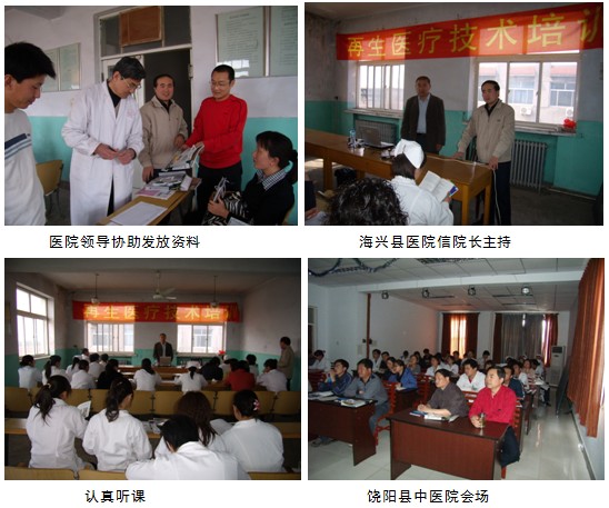 09年新春伊始海興縣人民醫(yī)院與饒陽縣中醫(yī)院的領(lǐng)導(dǎo)和中國中西醫(yī)結(jié)合學(xué)會燒傷專業(yè)委員會河北辦事處便開始共同商討籌備舉辦學(xué)習(xí)班的相關(guān)事宜,2009年4月27日和30日中國中西醫(yī)結(jié)合學(xué)會燒傷專業(yè)委員會常委樊兆宗教授應(yīng)邀分別來到兩家醫(yī)院以“原位再生復(fù)原醫(yī)療技術(shù)在多學(xué)科規(guī)范應(yīng)用”為題,就原位再生復(fù)原醫(yī)療技術(shù)在燒傷、創(chuàng)傷、潰瘍等方面臨床應(yīng)用的范圍、技術(shù)規(guī)范和最新進展進行了專題學(xué)術(shù)講座。