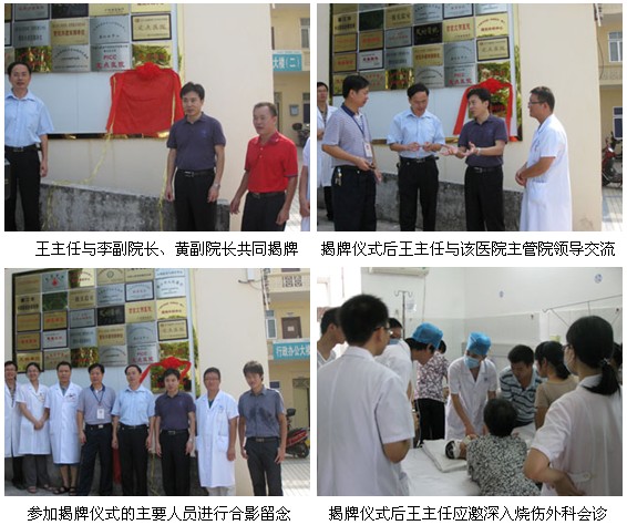 2011年8月31日是廉江市人民醫(yī)院的重要日子,全院迎來了中國中西醫(yī)結(jié)合學(xué)會燒傷專業(yè)委員會廉江市燒傷創(chuàng)瘍培訓(xùn)基地成立及揭牌儀式。揭牌儀式于2011年8月31日早上九點在廉江市人民醫(yī)院醫(yī)技樓進行,中國燒傷創(chuàng)瘍雜志副總編輯、中國中西醫(yī)結(jié)合學(xué)會燒傷專業(yè)委員會常委兼秘書、北京美寶燒傷創(chuàng)瘍研究所副所長、第二臨床臨床研究部主任、中國燒傷創(chuàng)瘍雜志副總編輯王洪生研究員,廉江市人民醫(yī)院李樹裕副院長,黃烈虎副院長兼醫(yī)務(wù)科長及該醫(yī)院院長助理和外三科余暢主任、外科骨干醫(yī)生均參加了本次掛牌儀式。