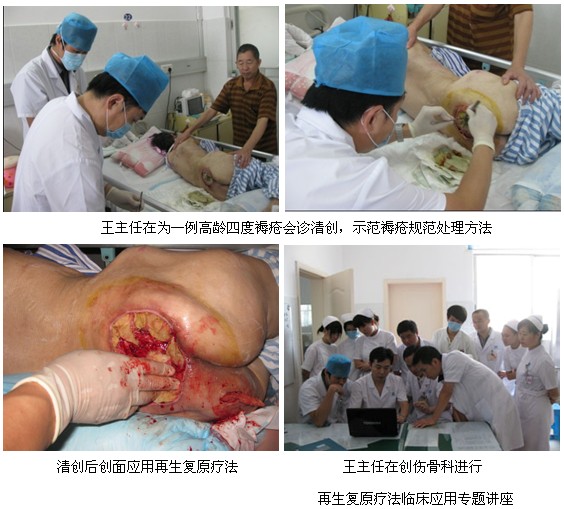 接下來,王主任在該醫(yī)院燒傷外科為一例大面積燒傷患者會診后,又應(yīng)創(chuàng)傷骨科況主任的邀請,為該科收治的一名高齡四度褥瘡患者進行了會診,并親自為該例褥瘡會診清創(chuàng),示范規(guī)范的創(chuàng)面處理方法。示范手術(shù)結(jié)束后,王主任又應(yīng)邀為創(chuàng)傷骨科醫(yī)護進行了“再生復(fù)原療法在難愈性創(chuàng)面治療新進展”專題講座,并重點講解了再生復(fù)原療法在褥瘡、糖尿病足及骨科創(chuàng)瘍的創(chuàng)面規(guī)范化處理及全身綜合治療要點,同時還講解了電擊傷及手指再生等相關(guān)臨床治療方法,講解完后,醫(yī)生均表示王主任這次的到來讓他們受益匪淺,他們從今天起一定會在臨床上使用原位再生療法造?;颊?。