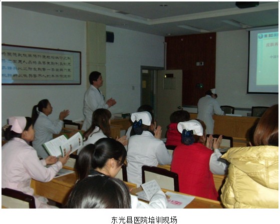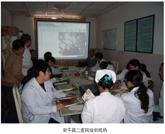 2012年11月13日及23日,應安平縣二醫(yī)院和東光縣人民醫(yī)院的邀請,中國中西醫(yī)結合學會燒傷專業(yè)委員會常委樊兆宗教授在兩家醫(yī)院分別院進行了“再生復原醫(yī)療技術在創(chuàng)面修復中的應用”學術培訓。樊教授在授課中展示了大量的臨床病例圖片,介紹了不同深度的燒傷創(chuàng)面及各類難愈性創(chuàng)傷、潰瘍創(chuàng)面的規(guī)范化處理方法與技巧、注意事項等;強調(diào)了再生復原療法在深II度和III度燒傷創(chuàng)面清創(chuàng)時要盡早進行處理,加速創(chuàng)面的液化;演示了糖尿病足等難愈性創(chuàng)面中筋膜室減壓和壞死組織徹底的清創(chuàng)術;介紹了多功能敷料創(chuàng)瘍貼的應用范圍、適應癥、規(guī)范清創(chuàng)換藥技術等。參加培訓的醫(yī)務人員均被這一技術神奇的療效所折服。