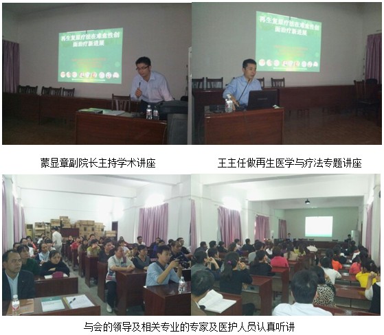 2012年11月20號(hào)下午,中國(guó)中西醫(yī)結(jié)合學(xué)會(huì)燒傷專(zhuān)業(yè)委員會(huì)常委兼秘書(shū)、《中國(guó)燒傷創(chuàng)瘍雜志》副總編輯、北京燒傷創(chuàng)瘍研究所副所長(zhǎng)、臨床部主任王洪生研究員應(yīng)廣西右江礦務(wù)局工人醫(yī)院的邀請(qǐng),到該醫(yī)院進(jìn)行 “再生療法在燒傷及難愈性創(chuàng)瘍創(chuàng)面治療新進(jìn)展”專(zhuān)題臨床學(xué)術(shù)講座。