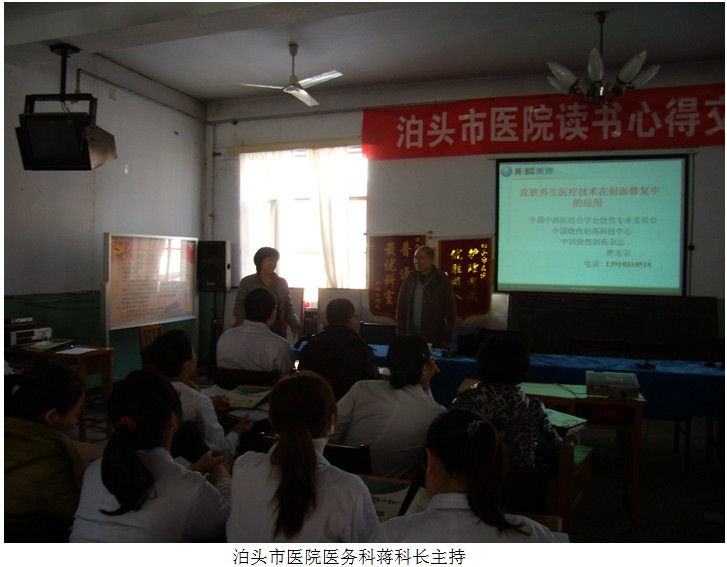 任丘市人民醫(yī)院是一所二級甲等綜合性醫(yī)院;泊頭市人民醫(yī)院是贊皇縣唯一醫(yī)療、教學、科研、急救、康復為一體的綜合性二級甲等醫(yī)院,兩院均為當?shù)睾诵尼t(yī)院,承擔著大量重要的醫(yī)療救治工作。此次培訓,樊兆宗教授主講內容為再生醫(yī)療技術在多學科的應用,樊教授通過典型臨床病例的治療介紹了再生醫(yī)療技術在外科創(chuàng)面、骨外露、皮膚潰瘍(褥瘡)、糖尿病足、肛腸換藥等多學科的臨床應用。