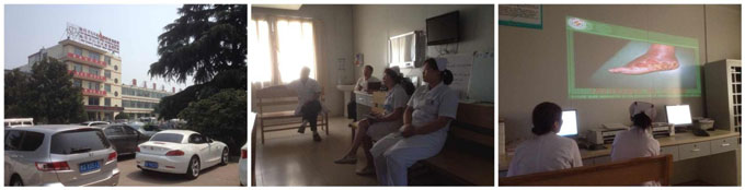 培訓后趙教授親自為4例糖尿病足患者進行了示范換藥操作,針對4例不同部位的潰瘍分別邊操作邊講解了許多再生技術換藥要領??剖抑魅卫顦浞ㄉ钣懈杏|地說,我作為一名博士生科主任,趙教授從糖尿病基礎理論、糖尿病足治療、理論聯系實際,并親自帶領我操作,收獲很大。我們科是個新型科室,希望今后繼續(xù)關注我們科室的成長。