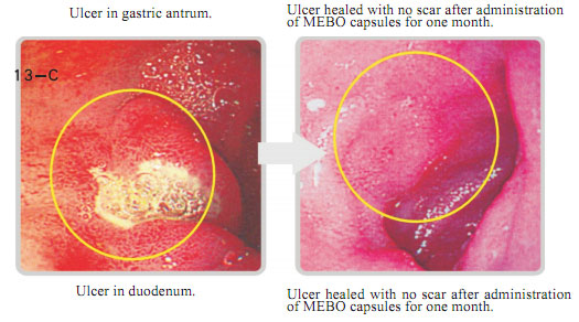 6.2 Gastrointestinal ulcers: At the present, the routine medical treatment is to repair the wound surface with scar formation, therefore resulting in recurrence and no healing.  Using our regenerative treatment in this research program, new gastrointestinal mucosa can be regenerated in situ from the ulcerous wound surface, and then replace the ulcerous wounds with no scarification, ulcers were healed completely.