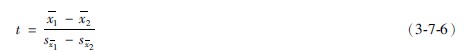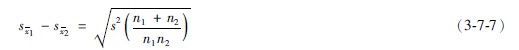 式中x1與x2為兩個樣本的平均數(shù),sx1-sx2為兩均數(shù)標準差的標準誤。計算公式為: