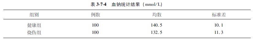 示例376某醫(yī)生對100例重度燒傷病人和100名健康者的血清鈉檢查結(jié)果進行統(tǒng)計分析,資料匯于下(表374)。問組間有無顯著性意義?