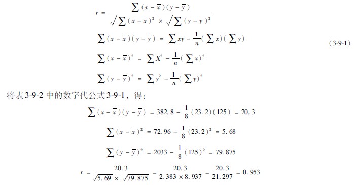 (5)求r值:因本例為大樣本資料,不能直接代入小樣本r公式,需采用分組公式計算r: