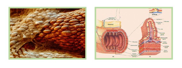 膠囊的各種成分從胃內(nèi)進(jìn)入腸道后與腸液作用,形成了平均大小為30×0.7微米大小的微晶體,呈花朵形或纖維狀,附著在腸絨毛間隙中,可撐開腸絨毛,增加腸黏膜吸收面積,同時(shí)包裹食垢隨絨毛擺動(dòng)被清理。