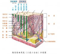 燒傷濕性醫(yī)療技術(shù)發(fā)明人徐榮祥科學(xué)地將皮膚的熱損傷程度劃分為“三度六型”,簡(jiǎn)稱“三度六分法”,中國(guó)中西醫(yī)結(jié)合學(xué)會(huì)燒傷專業(yè)委員會(huì)將“三度六分法”確定為燒傷創(chuàng)面損傷深度的級(jí)別評(píng)定標(biāo)準(zhǔn),即I度、淺II度、深I(lǐng)I度淺型、深I(lǐng)I度深型、III度淺型、III度深型。