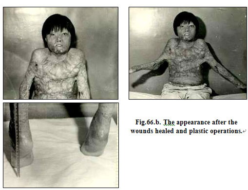 (1) Direct flame burns with 95 % TBSA, third-degree 91 %.