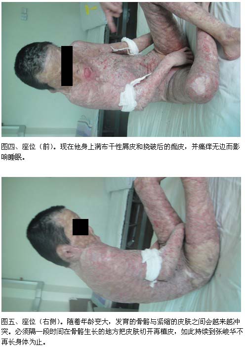 2011年6月14日濟南106醫(yī)院高端美容整形燒傷創(chuàng)瘍中心收住來自山東省立醫(yī)院燒傷科一名全身燒傷疤痕,重度殘疾患兒。名叫張峻華,男,12歲,是山東省淄博市淄川區(qū)昆侖鎮(zhèn)大昆侖村小學二年級畢業(yè)的學生。