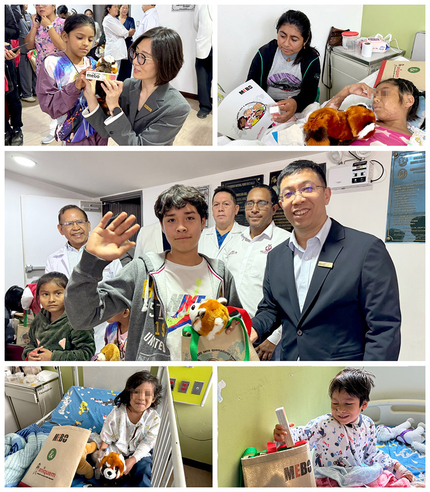 此外,美寶國際代表一行還專程慰問了因燒傷等原因?qū)е禄蔚膬和颊撸脤嶋H行動傳遞了關(guān)愛與溫暖。 “Little MEBO”小熊貓再度亮相,成為特別的友誼橋梁。