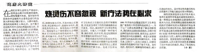 徐榮祥教授發(fā)明的皮膚原位再生醫(yī)療技術(shù)(燒傷濕潤暴露療法/濕潤燒傷膏MEBT/MEBO)就是符合以上要求的燒傷治療新方法,也是衛(wèi)生部從1991年開始向全國基層醫(yī)療衛(wèi)生單位推廣普及的十年百項科技成果之一。為了讓廣大群眾和消費者了解這項新技術(shù),我們將在這里比較系統(tǒng)的,分期介紹這種療法的設計原理、使用方法、臨床療效和應用中的注意事項。希望大家掌握這種療法的基本常識和操作技術(shù),有備無患,以防萬一,在自己或家人、同事受到燒燙傷危害時不至于措手不及,及時用藥、及時治療,緩解燒傷的痛苦,減少后遺癥的發(fā)生。這對保證傷員愈后的生活質(zhì)量和工作能力都是有很大幫助的。