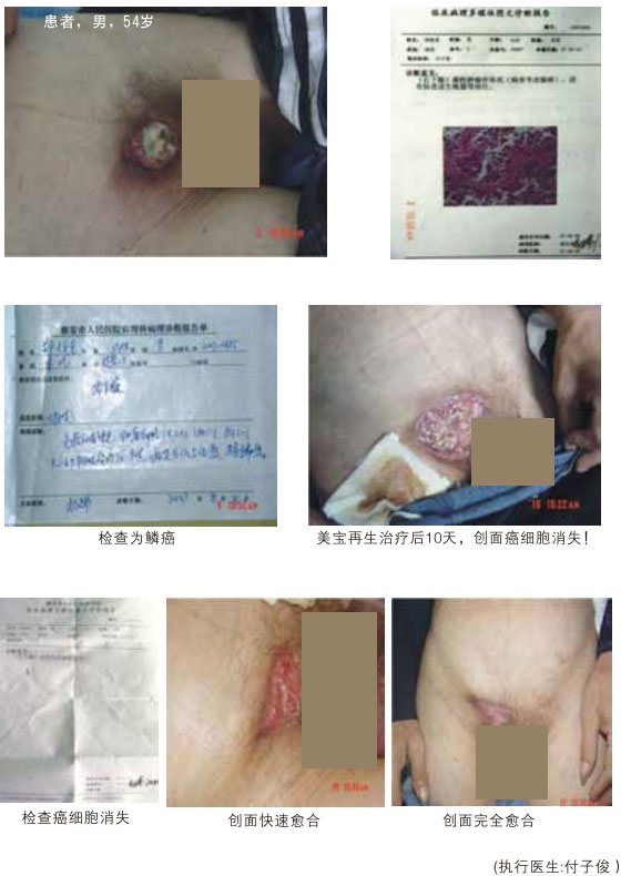(6)皮膚癌臨床應用重復:皮膚腺癌52天被治愈,皮膚鱗癌一個月被治愈。