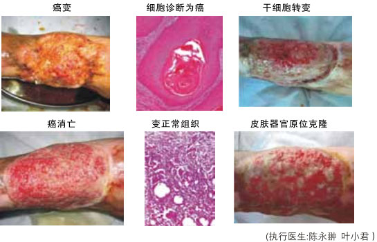 (5)人體癌組織原位試驗結果:選皮膚鱗癌做試驗對象,先將癌組織表面的壞死組織清楚,暴露新鮮成活的癌組織,而后外敷再生物質,每日早晚更新一次,21天后,皮膚癌創(chuàng)面癌細胞消失,而后皮膚愈合。