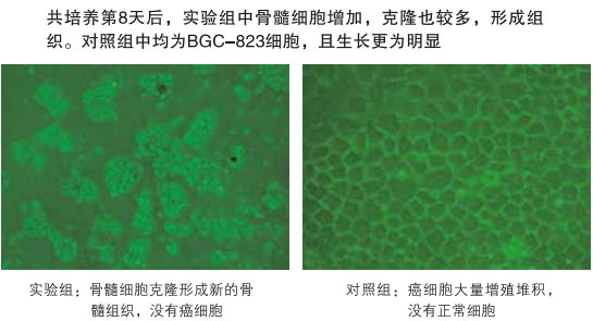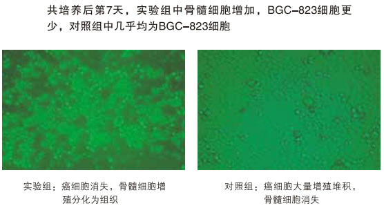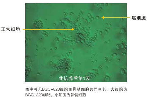 低濃度BGC-832(胃癌C)細胞與高濃度骨髓細胞的共培養(yǎng)結果