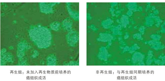 (4)人體腫瘤組織體外培植試驗結果:取人體胃癌組織植塊和盲腸癌組織植塊進行體外培養(yǎng),分兩組,一組加入一定量的再生物質,一組不加再生物質,結果為:加入再生物質培養(yǎng)的植塊一周后死亡,沒有加入再生物質培養(yǎng)的癌植塊沒有死亡。