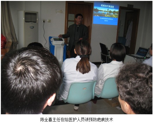 2012年11月18日,中國中西醫(yī)結(jié)合學(xué)會(huì)燒傷專業(yè)委員會(huì)委員、北京美寶燒傷創(chuàng)瘍研究所臨床部專家陳全喜主任受信陽市中心醫(yī)院內(nèi)分泌科主任郭向陽的邀請(qǐng)和區(qū)域經(jīng)理李瑩瑩一同到信陽市中心醫(yī)院內(nèi)分泌科進(jìn)行全科人員的皮膚原位再生醫(yī)療技術(shù)的培訓(xùn)。